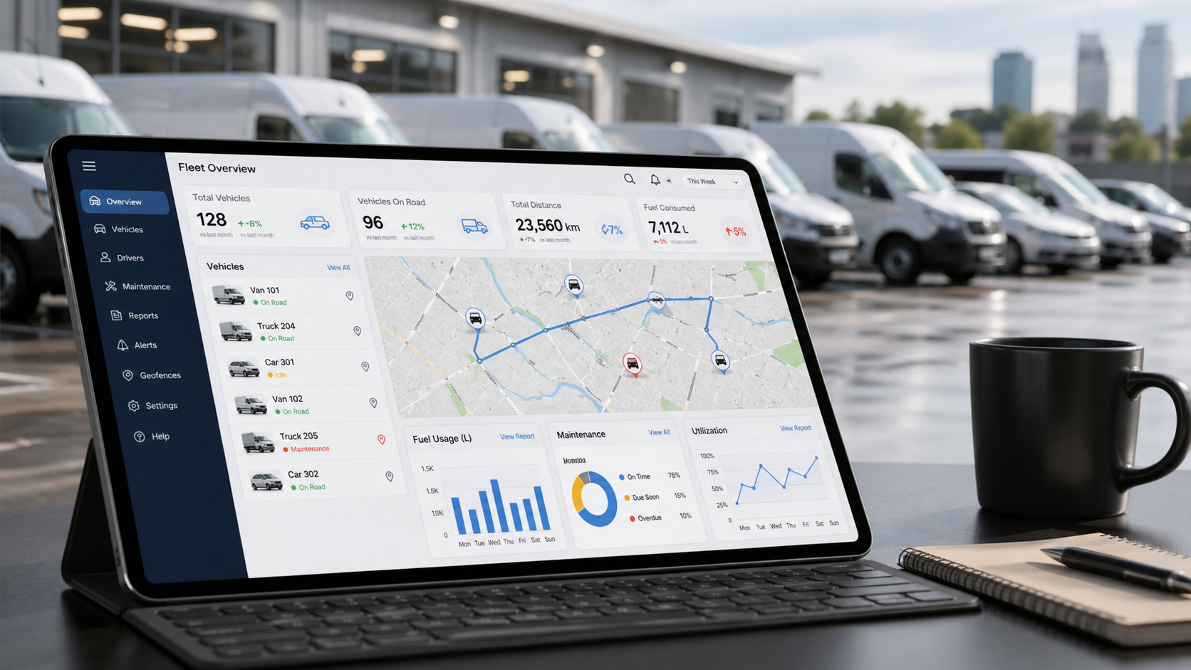 El mayor error en la gestión del mantenimiento de flotas es depender de la memoria humana. Un software de gestión de flotas debe enviar alertas automáticas cuando se acerca una revisión programada, cuando un vehículo supera el kilometraje previsto o cuando un sensor detecta una anomalía.